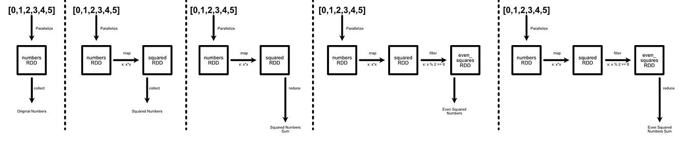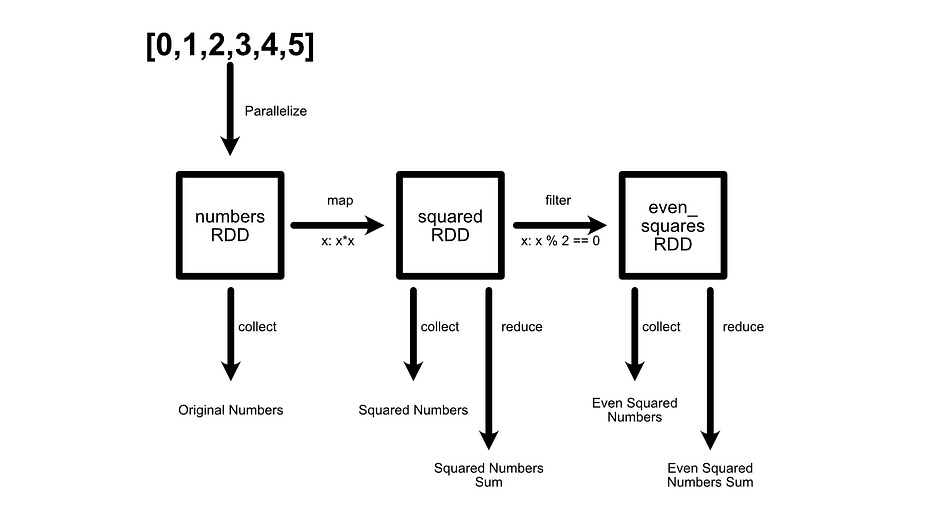 print(”Even squares (cached):”, even_squares_cached.collect()) # reused from cache, and result stored to cache