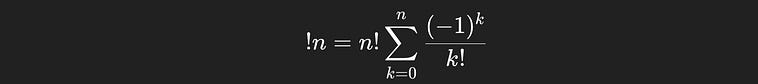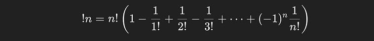 The formula for the number of deranagements of a sequence of `n` things.