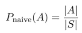 The end goal is to calculate P_naive(A), where A represents the set of all winning outcomes, and S represents the set of all possible outcomes.