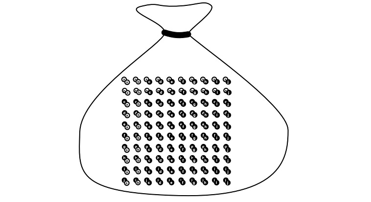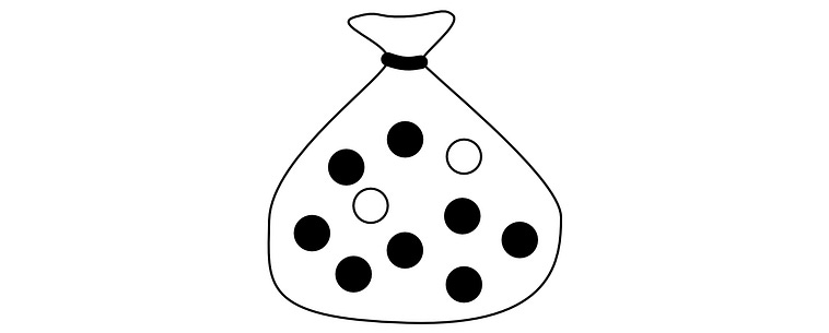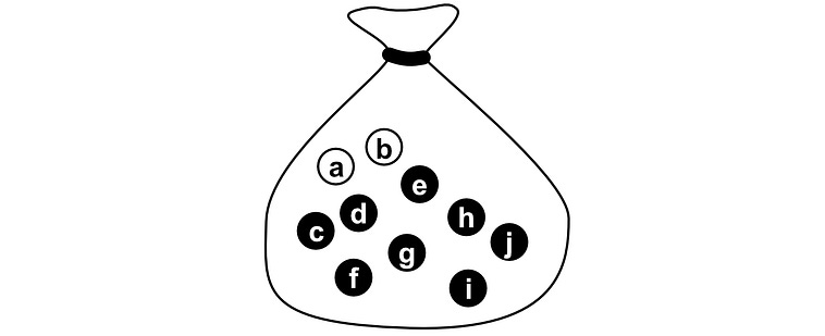 Imagine you have 10 pebbles in a bag. Two of them are white, the rest are black.