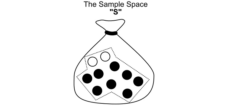SandArepresents “sets”, a set being a group of possible outcomes.Sis the set consisting of all pebbles in the bag, a.k.a. the sample space.and
