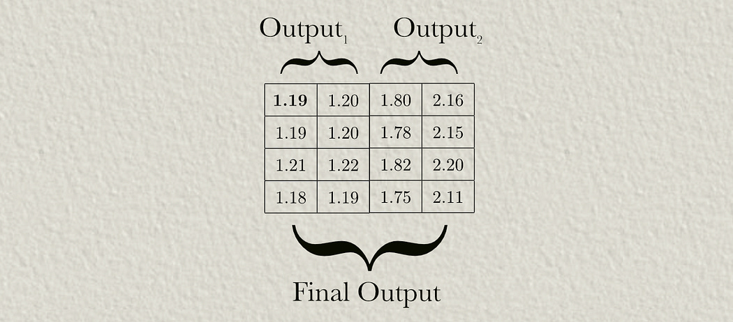 Both attention heads create a distinct output, which are concatenated together to produce the final output of multi-headed cross attention.