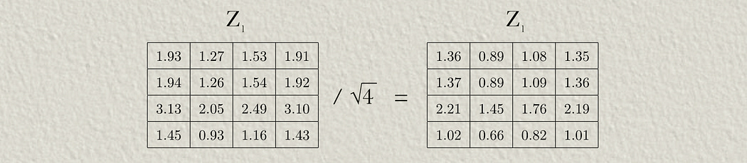 Because of the way the math shakes out, the “Z” matrix values have a tendency to grow as the size of the query and key grow. This is counteracted by dividing the values in the “Z” matrix by the square root of the sequence length.